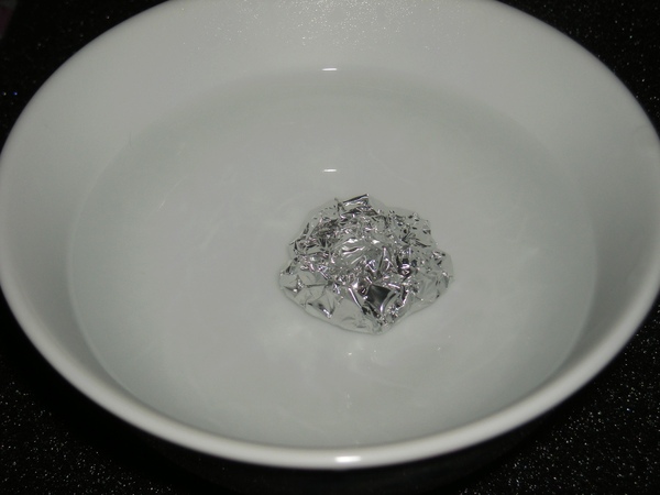 一碗熱水、一小片鋁箔紙、一匙鹽(依個人喜好)